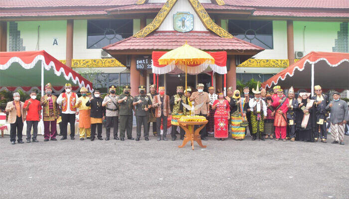 SINTANG | sintangPost.com-Pemerintah Kabupaten Sintang melaksanakan upacara Hari Jadi Kota Sintang yang ke 660 Tahun 2022 di Halaman Kantor Bupati Sintang pada Selasa, 10 Mei 2022. Upacara terasa meriah karena seluruh peserta upacara kecuali Anggota Forkopimda, menggunakan pakaian adat nusantara.